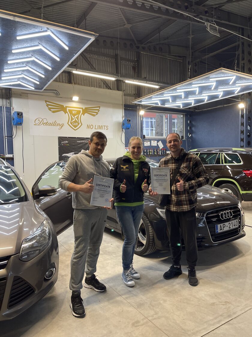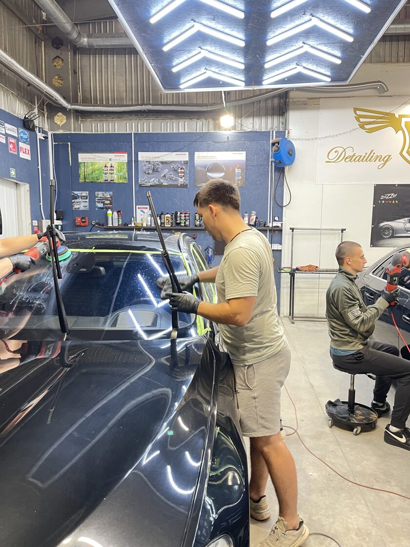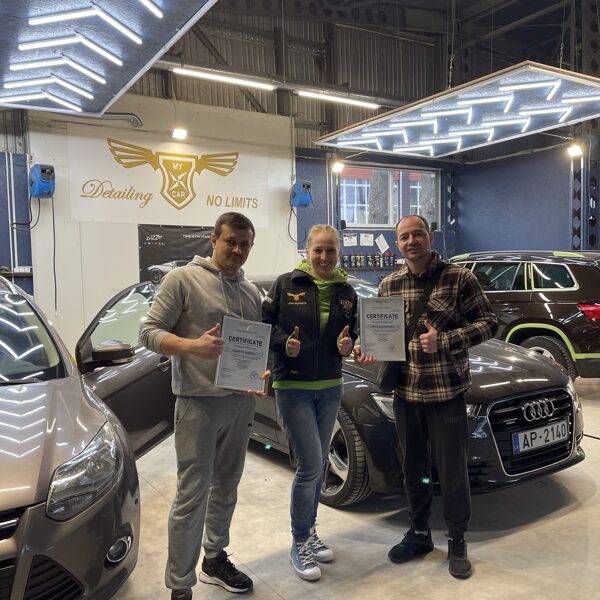 Практикa - 3 дня подряд (около 26 ч.): Полный рабочий процесс - мойка кузова, полировка, нанесение защитного покрытия (один автомобиль).